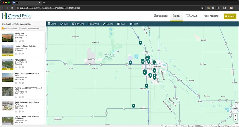 A key advantage of the tool is its integration with LocationOne.com, a national site selection platform used by economic developers and businesses across the country. This connection significantly increases the visibility of Grand Forks listings to a broader audience. Beyond property data, the platform also includes demographic overlays, workforce statistics, infrastructure proximity, and other insights that help businesses evaluate the region’s strengths and suitability for growth.