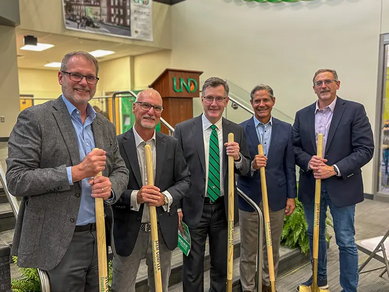 On Friday, September 18th, UND broke ground on phase 1 of the new STEM Complex! This facility will combine the curriculum from the UND College of Engineering and Mines with the College of Arts and Sciences to educate students in the disciplines of science, technology, engineering, and mathematics. These are the skills that are driving much of our region’s growth in the technology sector. The North Dakota legislature approved $57.4 million for phase 1, but required UND to raise $25 million in private contributions to unlock it. This goal was reached earlier this year. Phase 2 is around the corner with a $55.6 million commitment from the North Dakota Legislature; however, a $25 million private fundraising effort is needed to unlock those resources. UND is 1/3 of the way to the goal. Congratulations, UND!