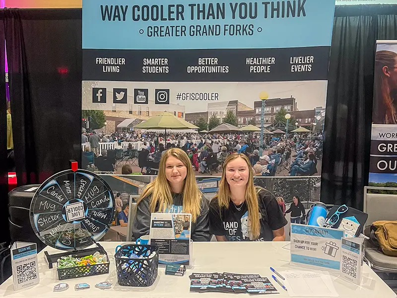 Greater Grand Forks: Way Cooler than You Think! had an exhibitor booth at the UND Career Fairs on September 23rd & 24th. The booth highlighted companies and careers in the Grand Forks Region. Attendance at the career fair allowed the brand to interface with hundreds of students. 82 students subscribed to the What’s Cooler Today newsletter, where they will receive regular updates about Grand Forks careers, internships, and happenings.